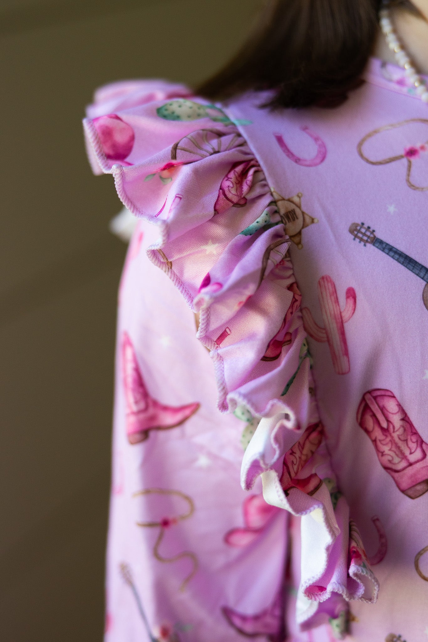 This darling lil’ cowgirl dress is a favorite—blending comfort, style, and just the right amount of twirl-worthy fun!