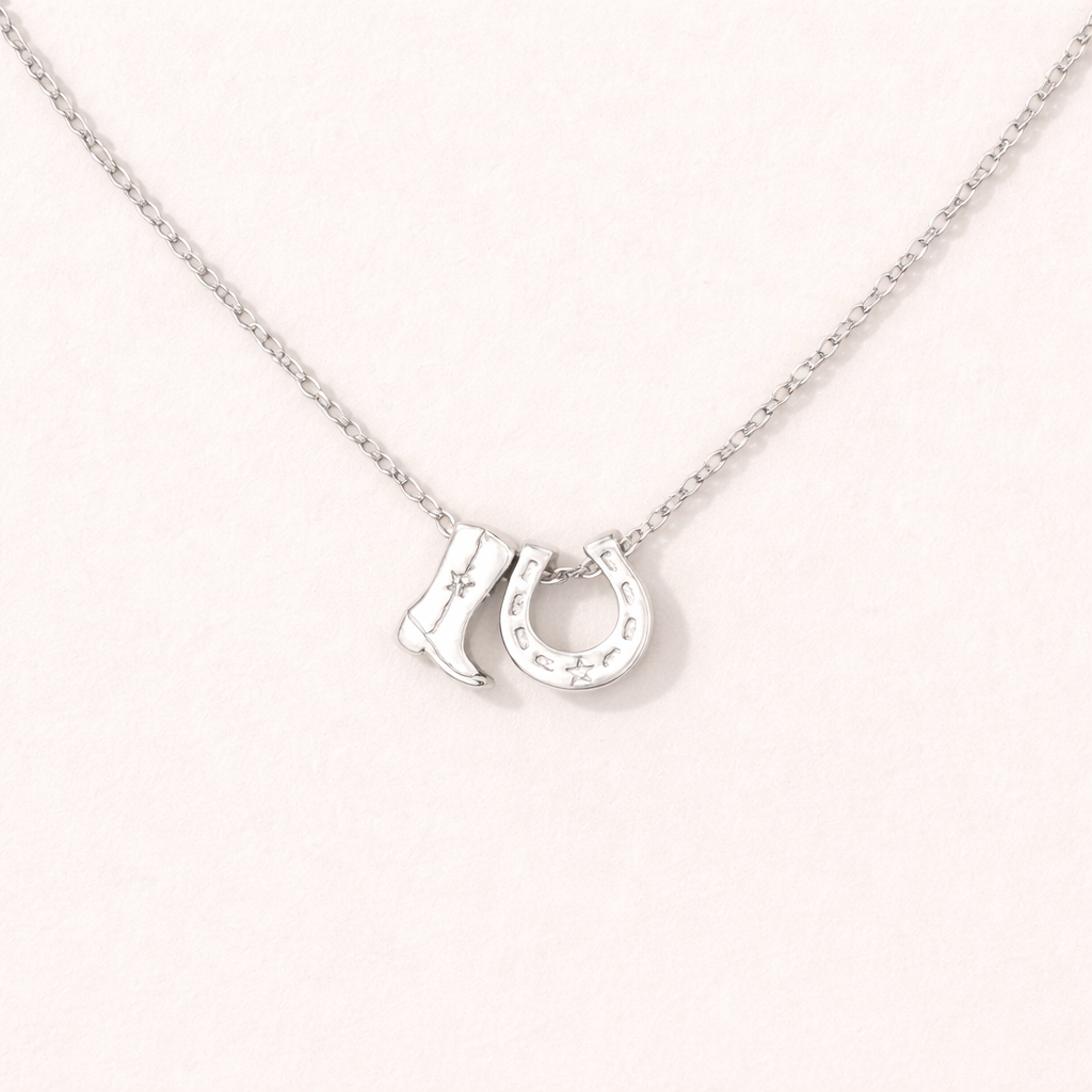 A charming and symbolic necklace featuring a delicately crafted horseshoe and boot charm, designed to celebrate the spirit of luck, resilience, and the love of horses!