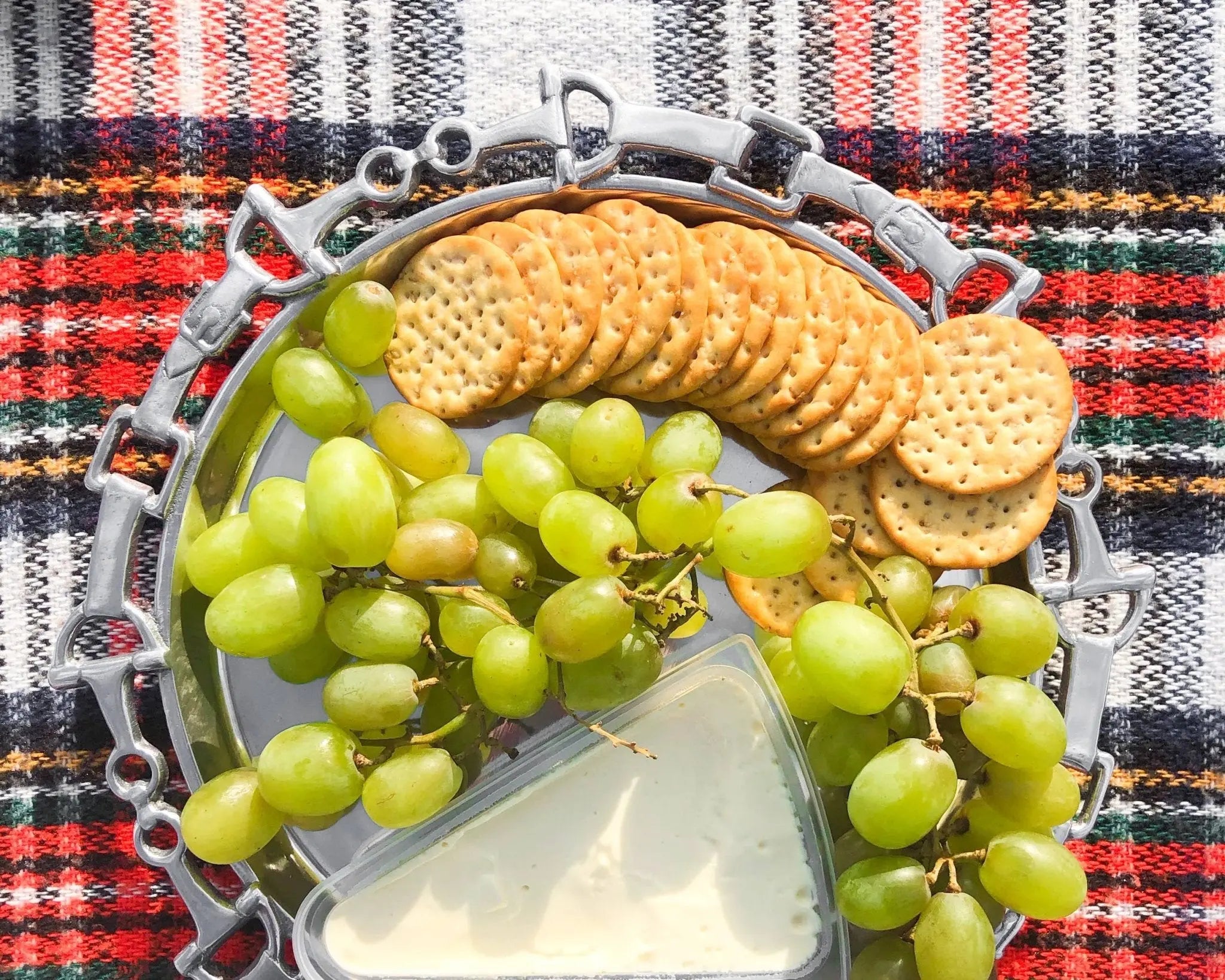 - Snaffle bits, rein rings, buckle accents connect to form an elegant silver border around the tray