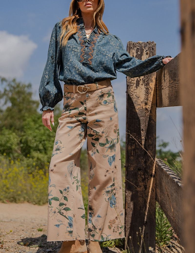 Floral Western Soft Stretch Twill Pants