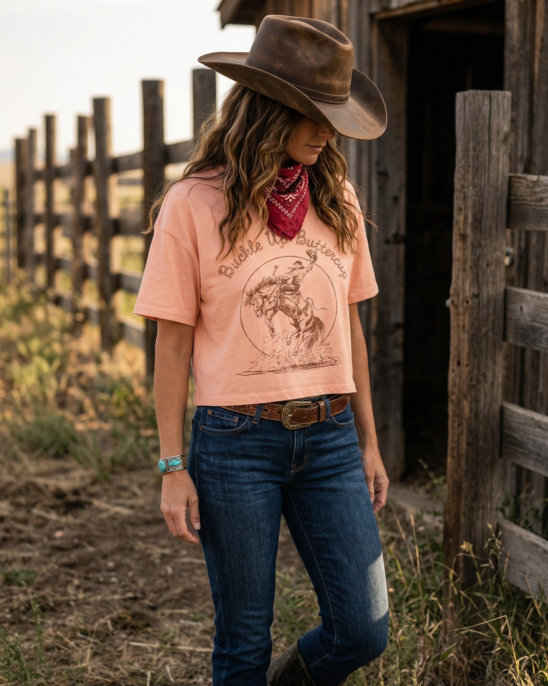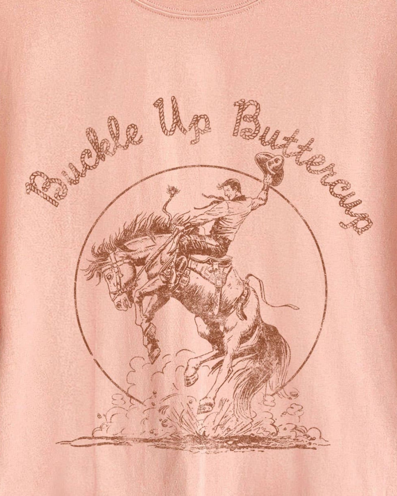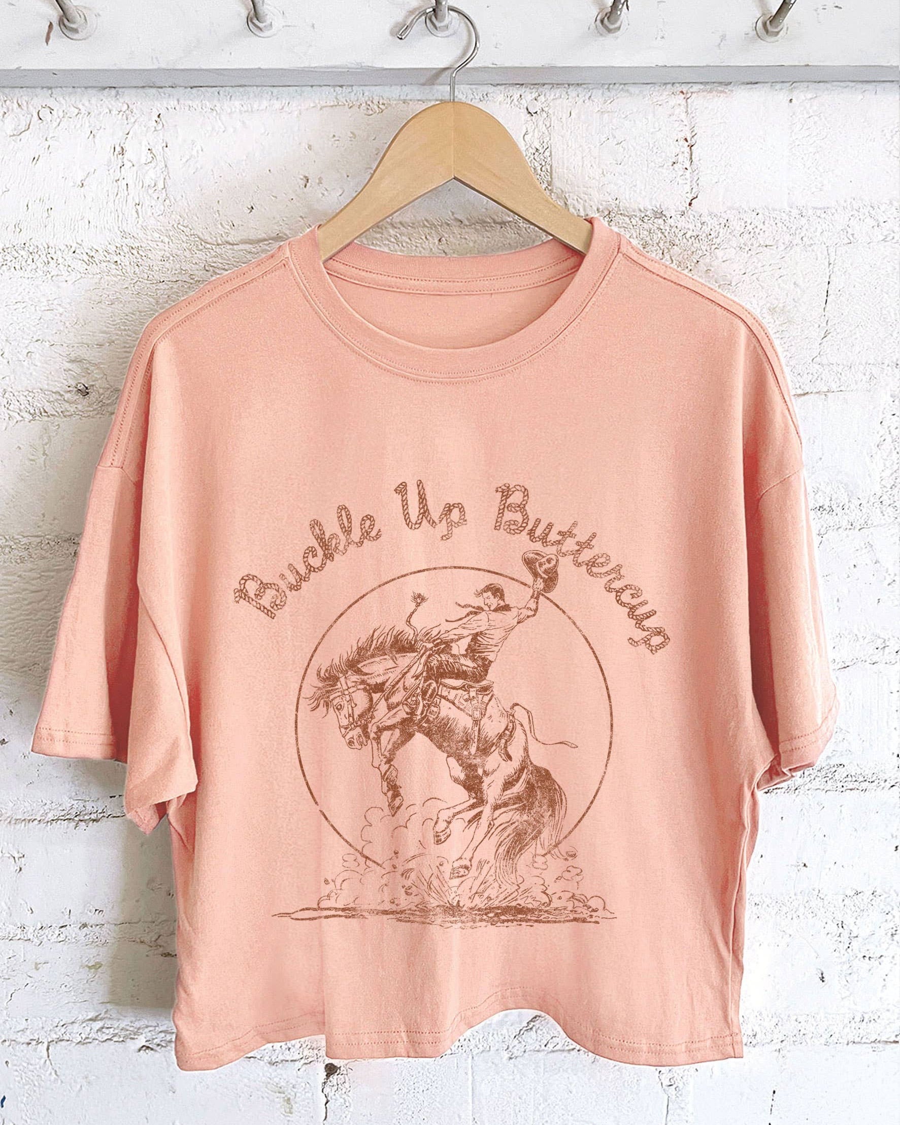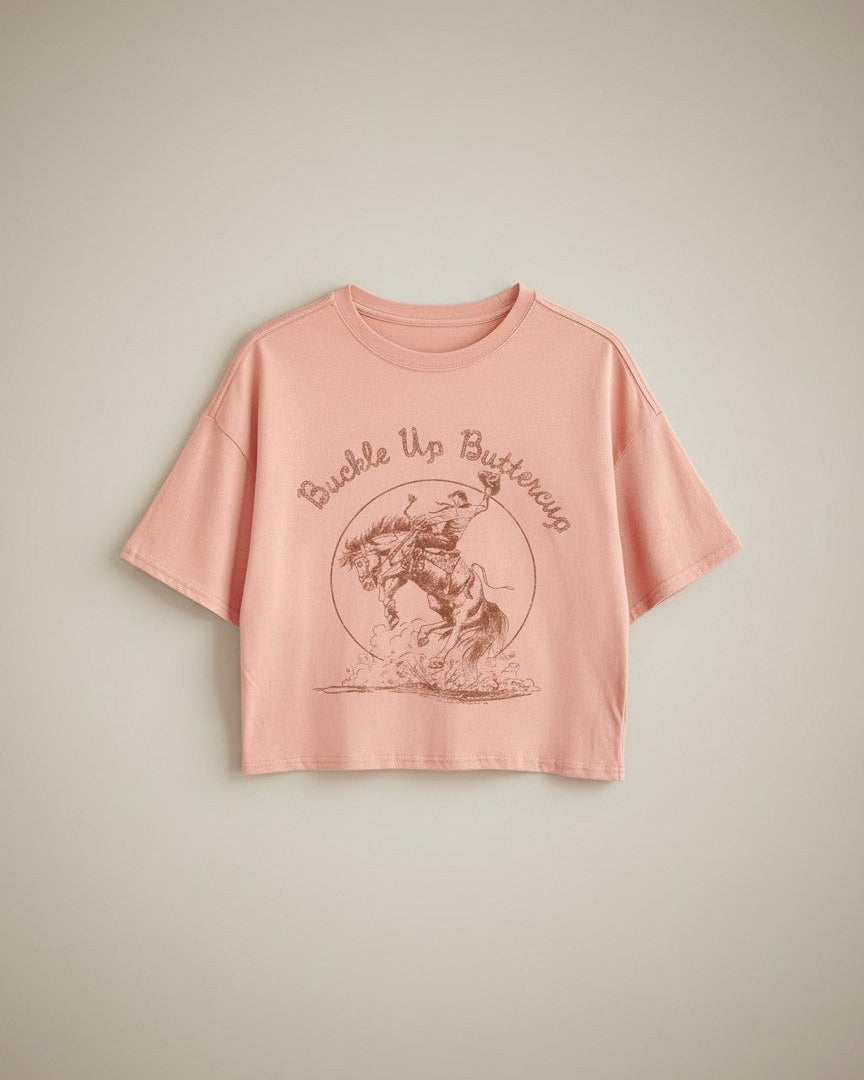 Buckle Up Buttercup Cowboy Long-Crop Tee (Peach)