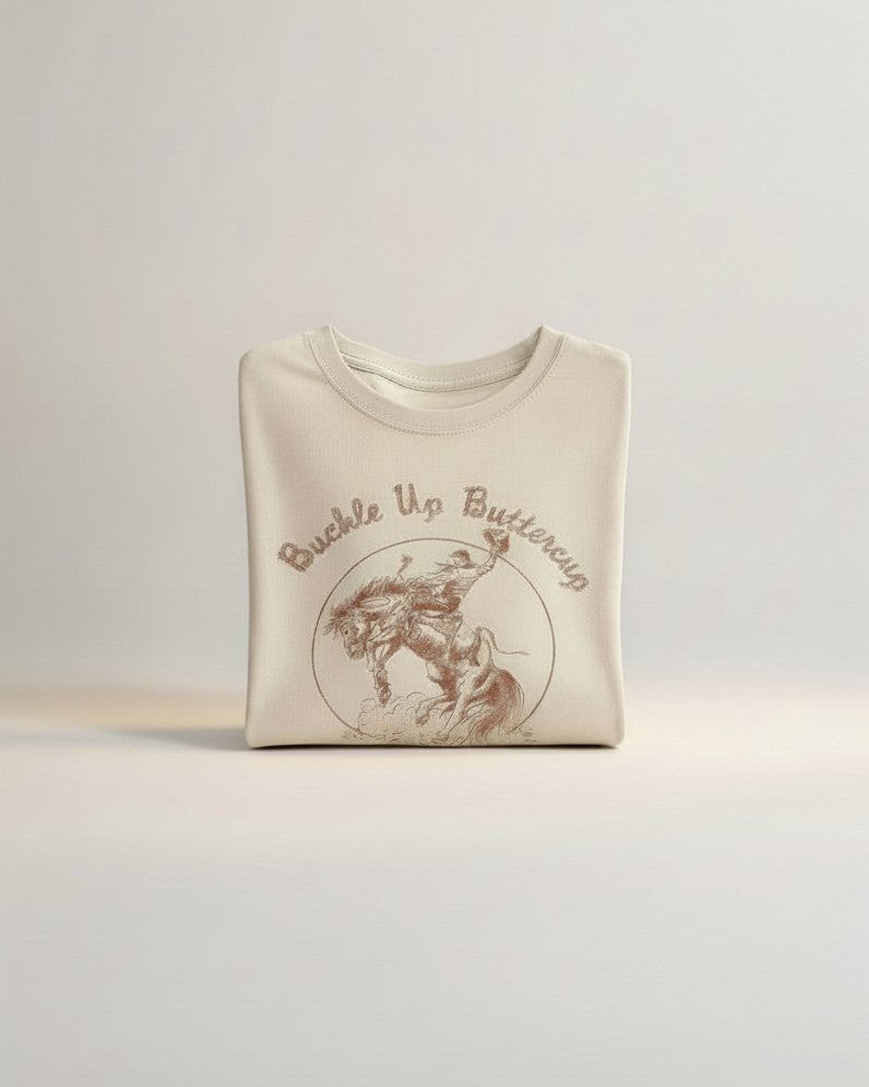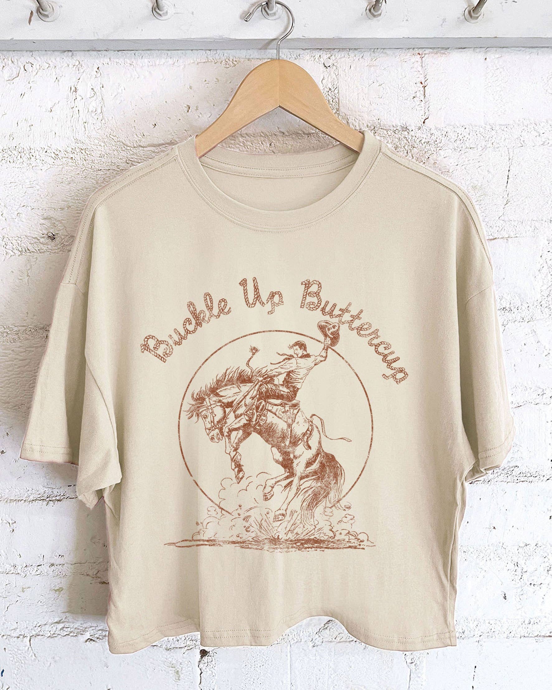 Buckle Up Buttercup Cowboy Long-Crop Tee (Khaki)