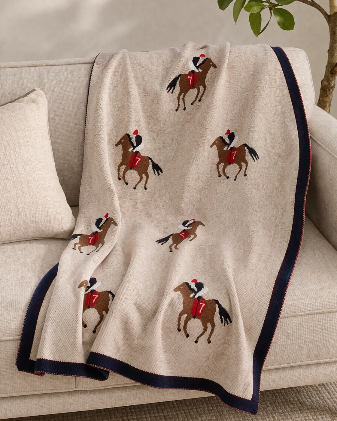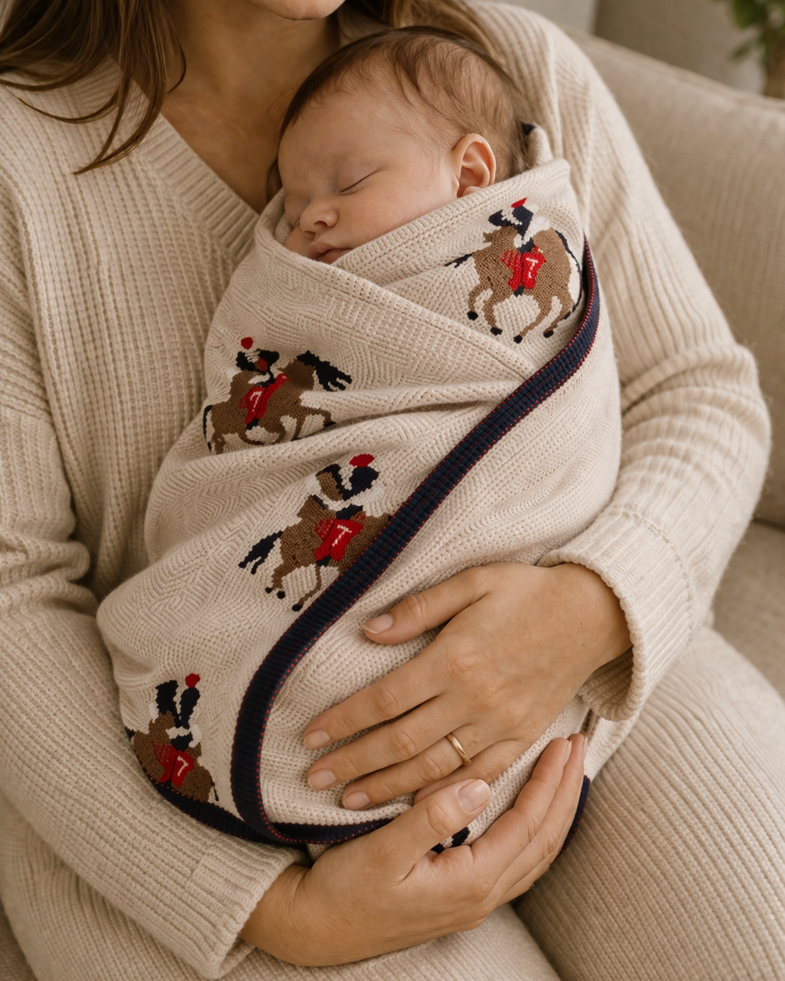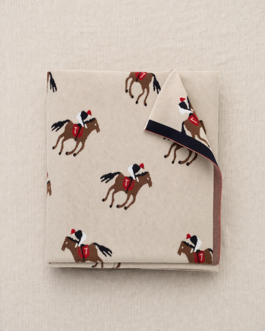 Una encantadora manta de algodón para bebé con motivos de carreras de caballos para el toque ecuestre más dulce.