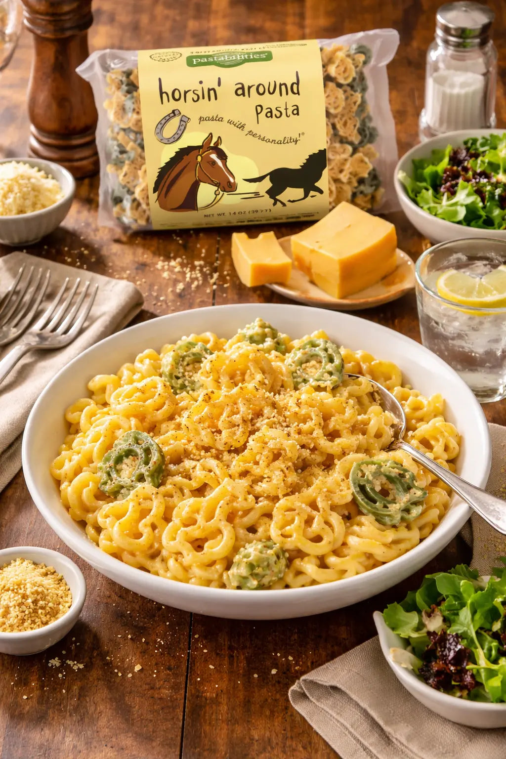 ¡Esta pasta divertida y festiva seguramente será la favorita de todas las familias amantes de los caballos! ¡Perfecta para su próxima fiesta temática de caballos, agrega un toque divertido y delicioso a la mesa!