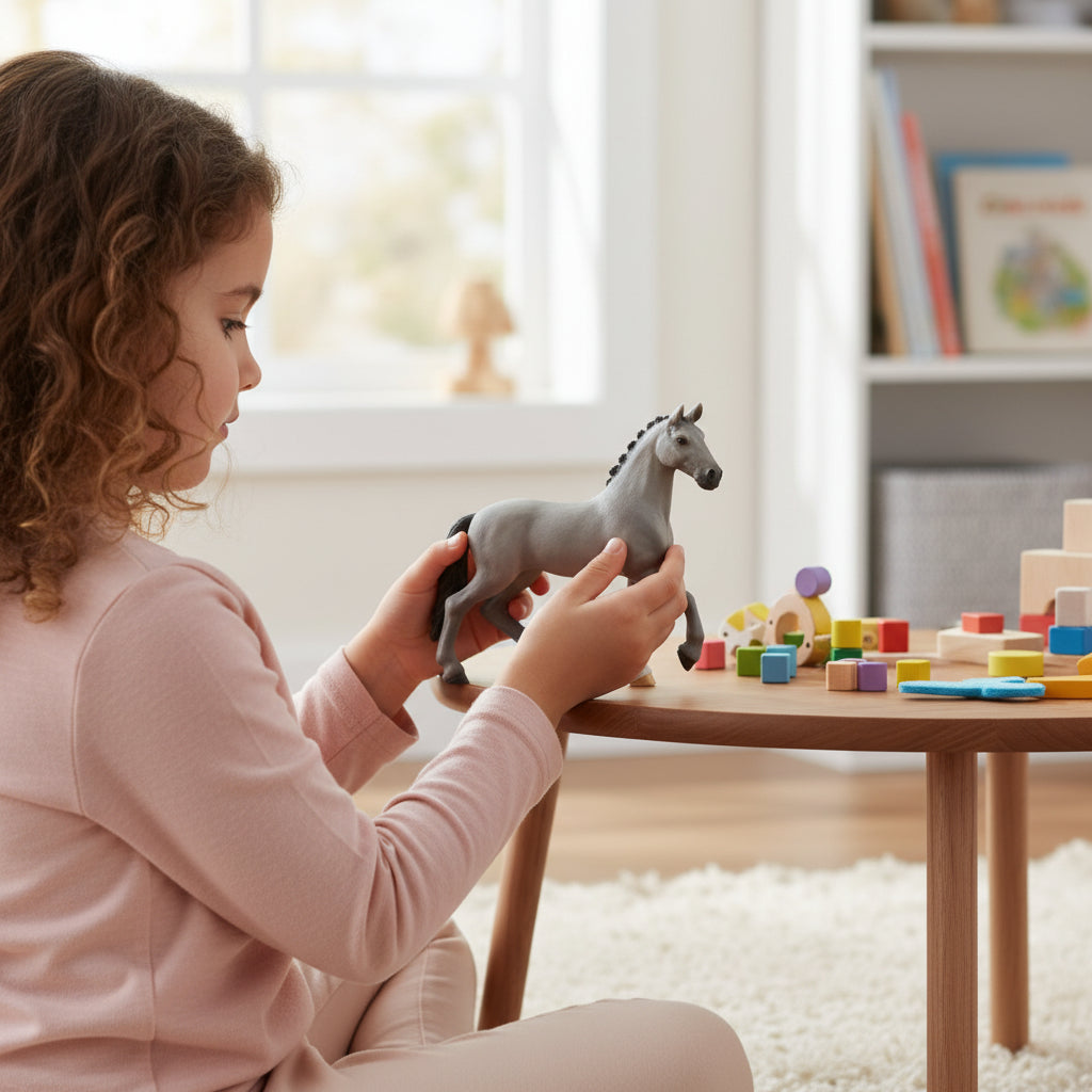 Have your child get lost in the world of play with this Cheval de Selle Francais Stallion, a fun, educational toy figurine!