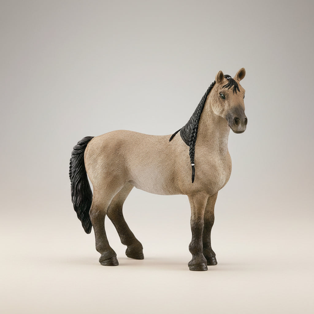 The vast lowlands of Argentina are where you'll find the Criollo Mare. From its signature braided mane to its compact, muscular frame, the Criollo Mare figurine from Schleich is an authentic replica of this high-endurance horse from the Pampas region.