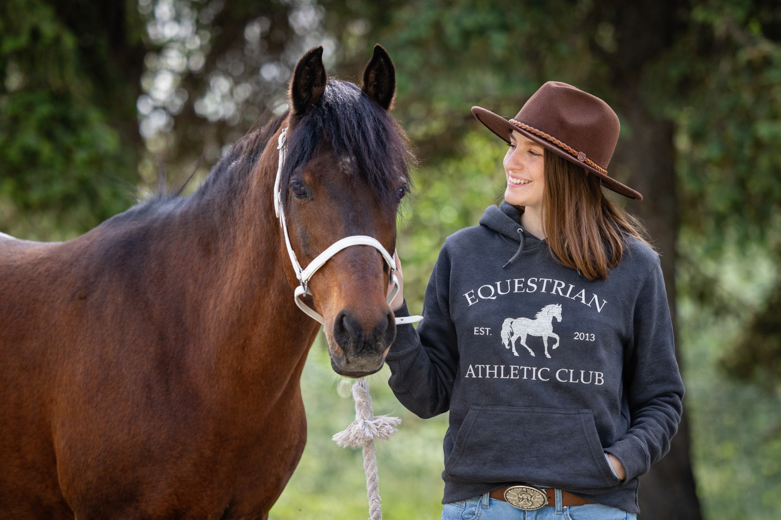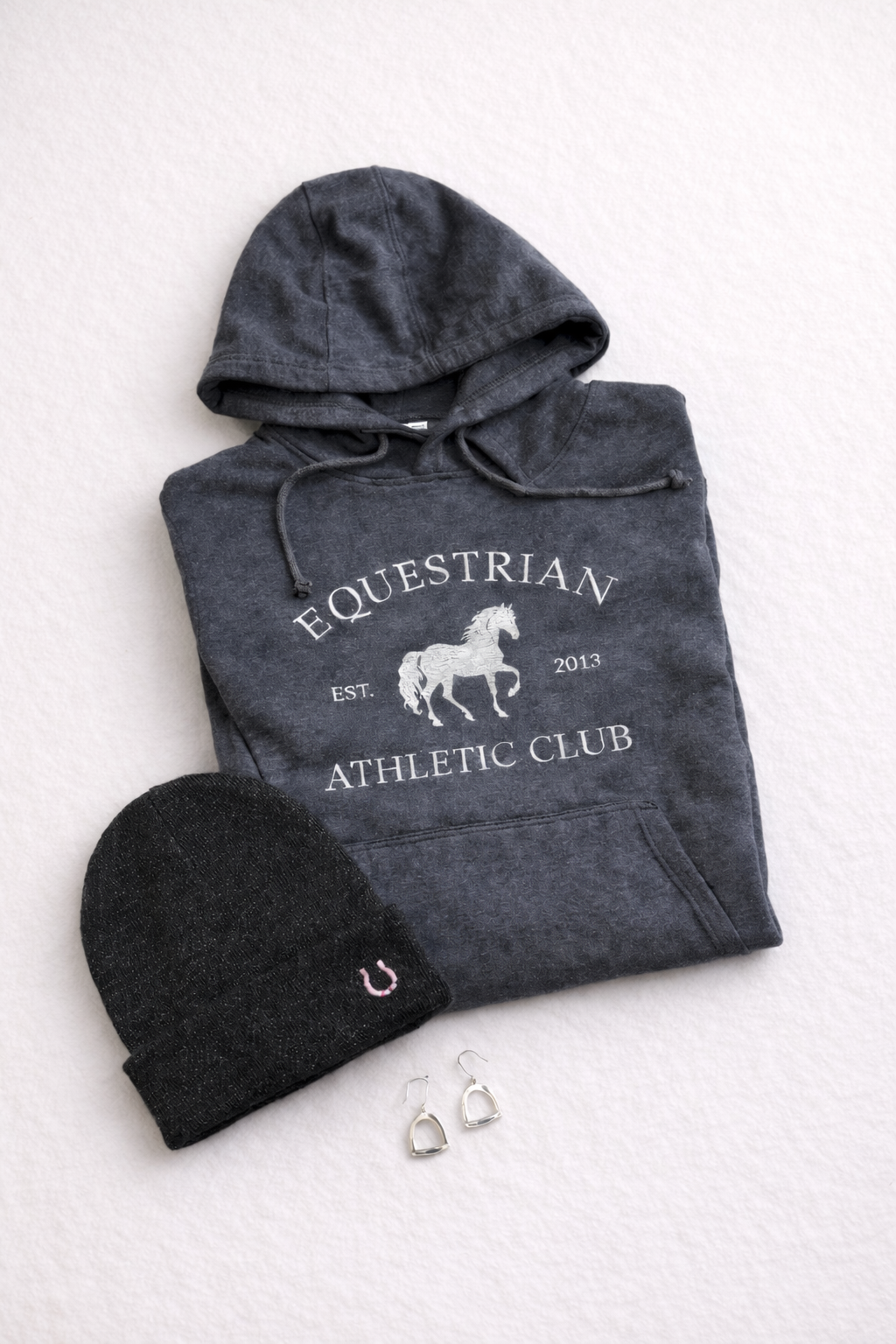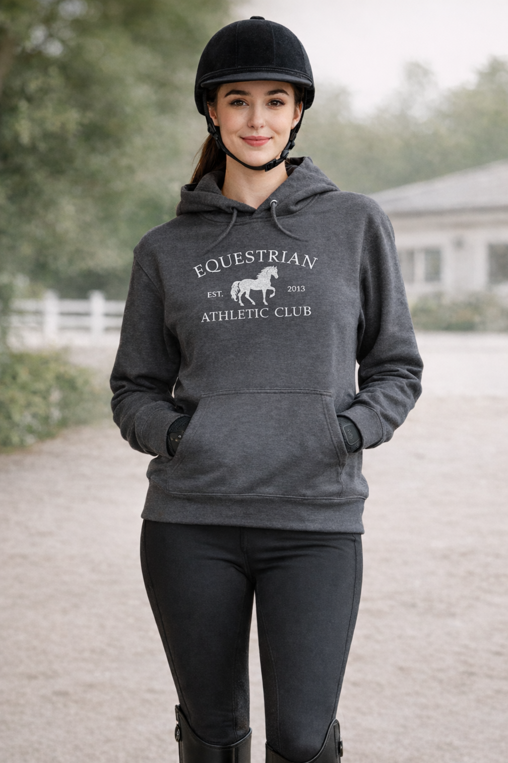 Classic, comfortable, and effortlessly equestrian. This hoodie is crafted in a rich charcoal heather and finished with a heritage-inspired horse graphic for a timeless look both in and out of the saddle!