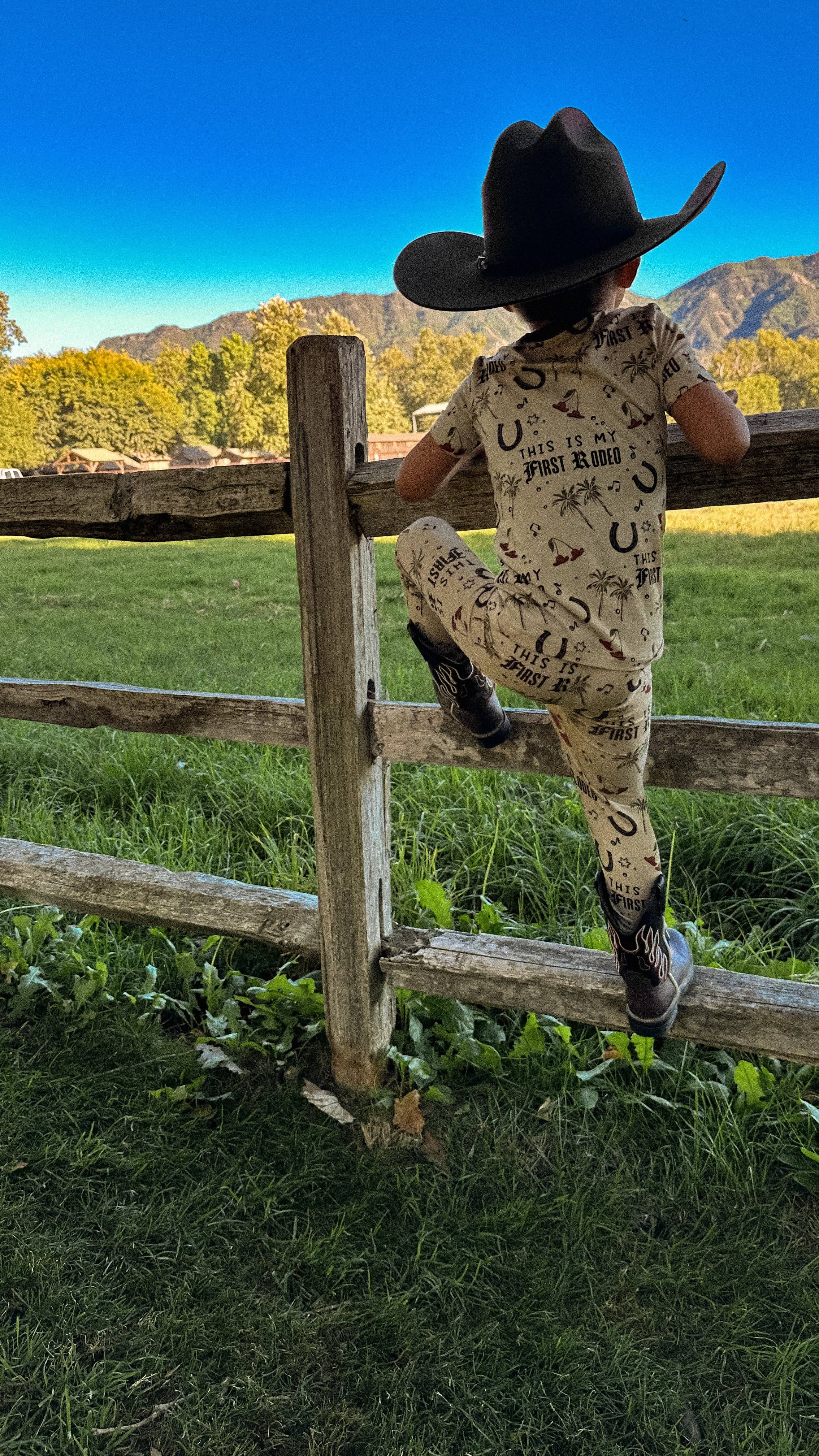 Soft enough for bedtime, tough enough for the wild west. Our bamboo two-piece set was made for little cowboys + cowgirls taking on their first rodeo. Breathable, stretchy + ridiculously comfy — this set is ready for playtime, bedtime, and everything in between.