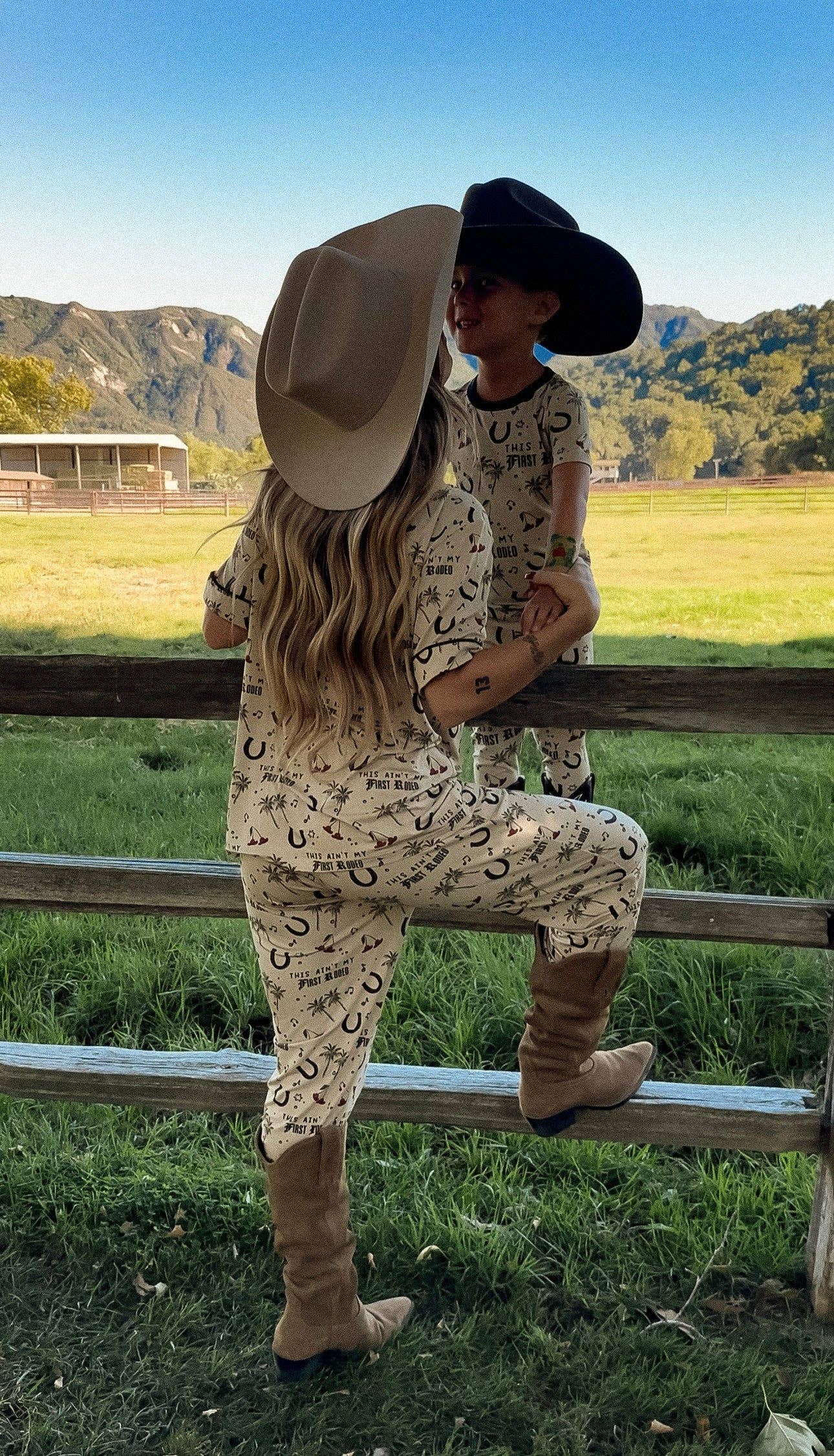 Cozy just got cowboy. Our bamboo adult two-piece features 'This Ain’t My First Rodeo' across a playful western-inspired print. Sustainable bamboo fabric keeps it soft + breathable, while the fit keeps it cool + classic. For the rookies + the pros — match your minis in the 'This Is My First Rodeo' set or zippy, made for every wild heart.
